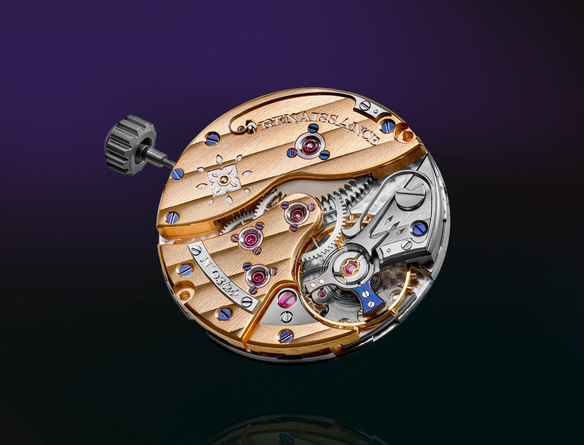 Au cœur de Renaissance bat le mouvement ND01.s, entièrement conçu et fini à la main dans l’atelier genevois. Son architecture ouverte met en valeur les finitions traditionnelles (anglages polis, côtes de Genève, perlage) et offre une lecture claire de la mécanique. Chaque détail reflète une volonté de cohérence entre forme, fonction et savoir-faire, sans recherche d’effet superflu.